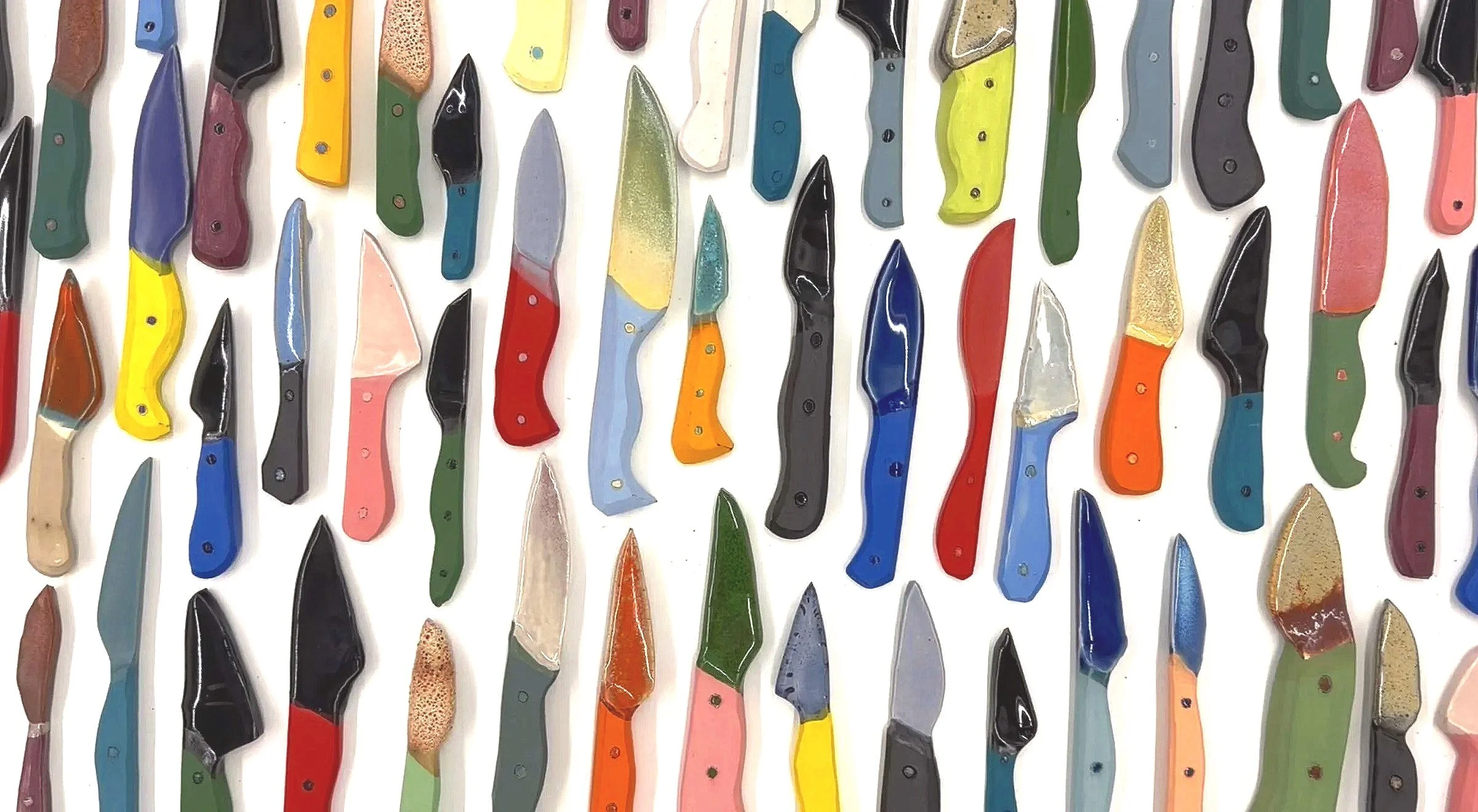 Knives / Made by hand, each one is unique in size and color (glaze). Referencing a kitchen paring knife, sizes vary between 4-8 inches in length. This is an ongoing project. Click image to see individual works.
